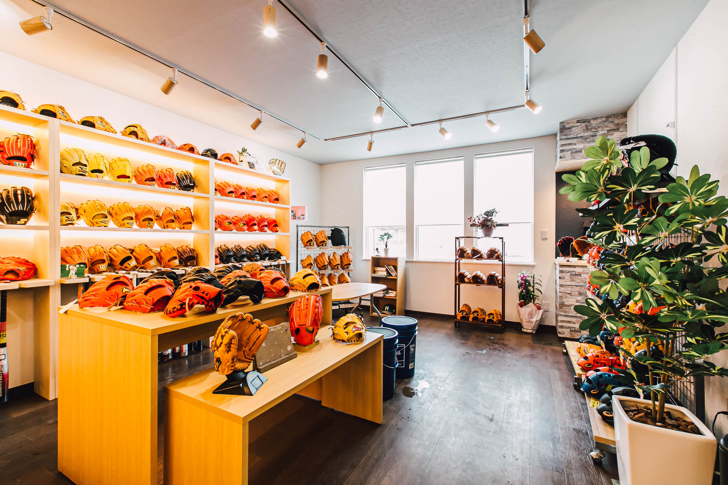 この空間に入室した瞬間に漂う革のかおりに包まれながら、グラブに手をはめてみてください。グラブハウスは陳列や見た目の美しさだけではなくて、視覚、触覚、味覚、嗅覚、聴覚の五感全体で感じられる空間です。